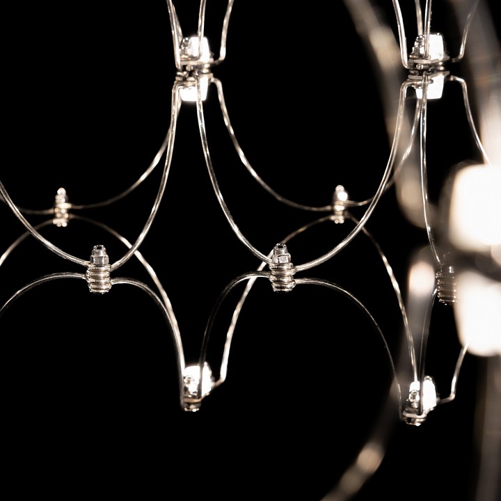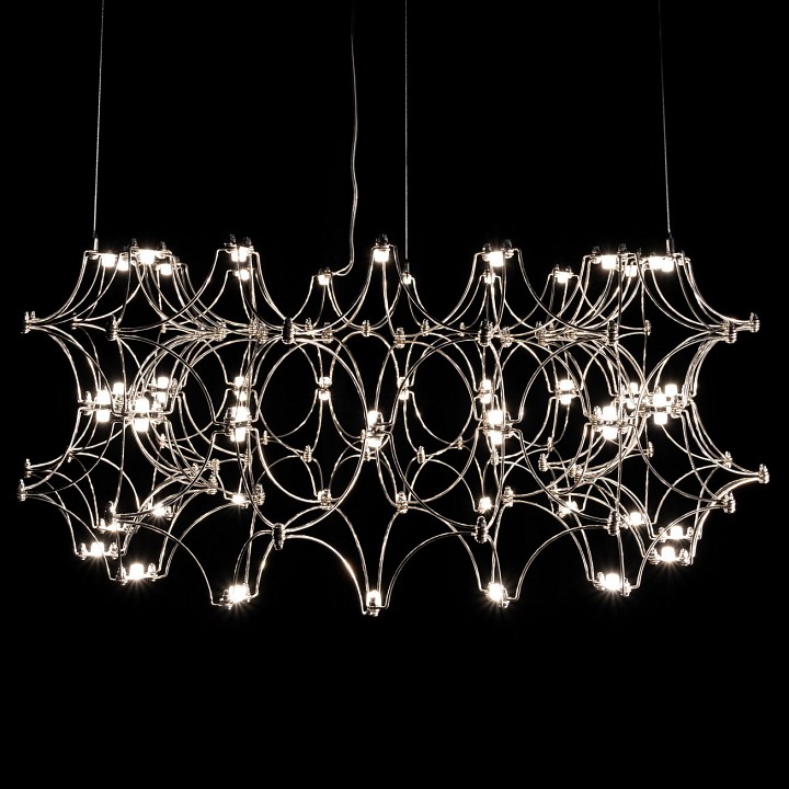 Модная люстра Bruno – универсальное решение для оформления классических и современных интерьеров. Изящный светильник гармонично впишется в обстановку, оформленную в стилях хайтек, минимализм, ар-деко. Будет прекрасно смотреться в гостиной, спальне, холле, столовой. Изюминка модели – необычная форма элементов, созданных из тонких изогнутых прутков нержавеющей стали. Соединяясь в круглую композицию, они создают впечатление легкости и одновременно торжественности. Светодиодная подсветка подчеркивает изысканную геометрию люстры и служит для общего освещения комнаты.