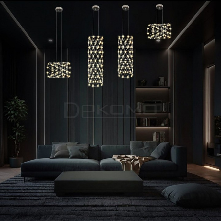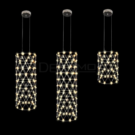 Стильная люстра Enya – образец элегантности и отличного вкуса. Цилиндрическая форма стилизованного плафона идеально гармонирует с оформлением интерьера в современных стилях: хай-тек, минимализм, лофт. Множество светодиодов создает яркое и вместе с тем спокойное освещение. Светильник эффектно смотрится над обеденным столом, креслом, диваном. Может встраиваться в композиции из нескольких люстр. Воздушность модели придает каркас из тонких металлических прутков, собранных в ромбовидный узор. Можно заказать подвесной светильник в горизонтальном или вертикальном исполнении. Люстра изготавливается вручную.