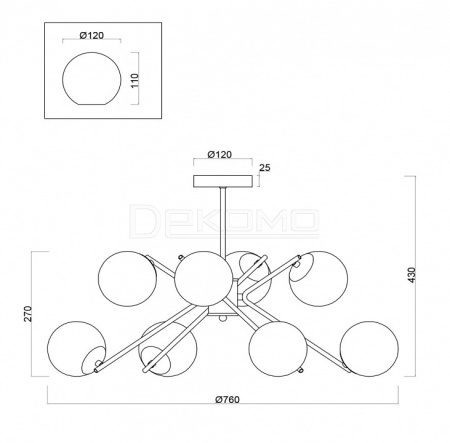 - Размер плафона, мм: