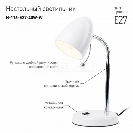 Настольная лампа офисная N-120-E27-40W-W