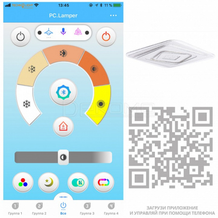 цвет: белый теплый - белый дневной, 2700-6500 K - Сопоставление с лампой накаливания: