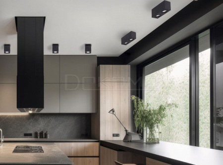 Контрастный черный цвет делает светильник акцентом на потолке.