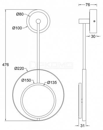 - Ш:220 x Г:76 x В:476