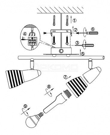 поворотный светильник предназначен для использования со скрытой проводкой