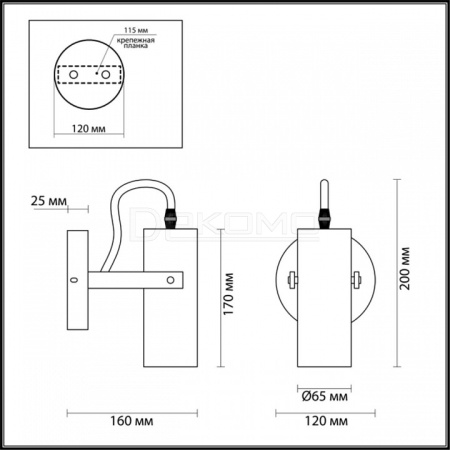 поворотный светильник предназначен для использования со скрытой проводкой