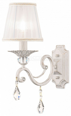 Немецкая компания Maytoni – мастер создания атмосферного освещения. Бра ARM247-01-G из традиционной коллекции Elegant – современное воплощение прародителей настенных светильников. Легкий плафон из белой органзы дает мягкий теплый свет, делающий комнату более загадочной. Крупные подвески из чистого прозрачного хрусталя с машинной отделкой обеспечивают легкую игру света на гранях, что прибавляет помещению торжественности.