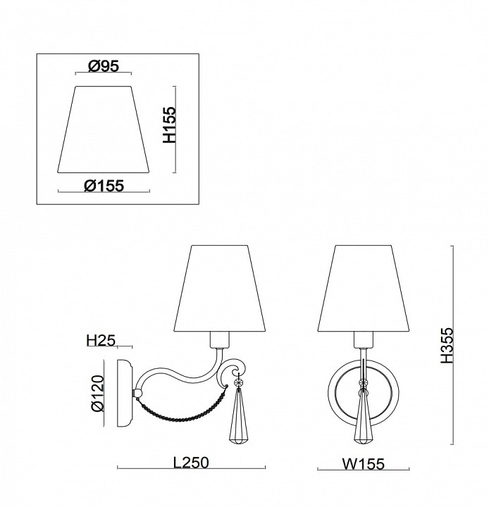 - Ш:155 x Г:250 x В:355