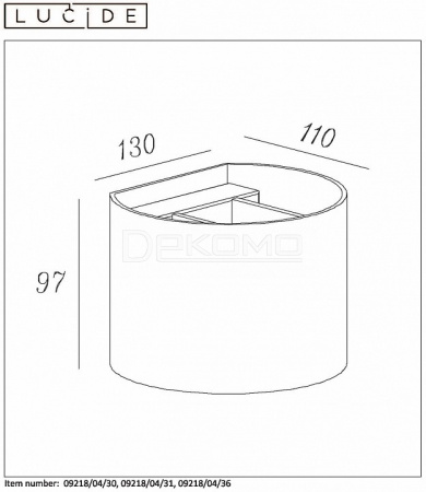 - Ш:130 x Г:110 x В:97