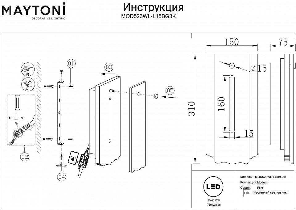 - Д:310 x Ш:150 x Г:75 x