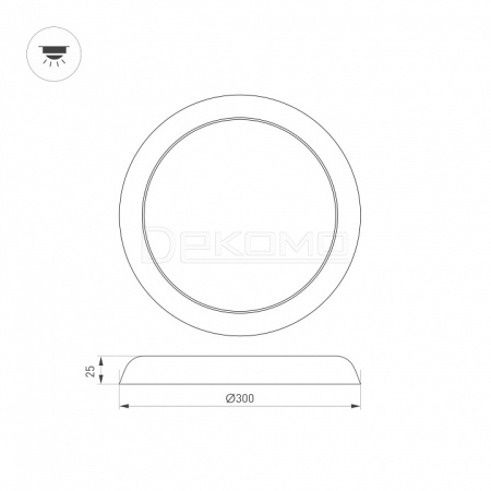 Накладной/встраиваемый светильник с изменяемой мощностью и цветовой температурой. Мощность 18-25 Вт, св. поток 1700-2200 лм, 75-90 лм/Вт, теплый 3000 K, дневной 4000K, белый 6000K, CRI>80, угол 120°, напряжение питания 230 В. Белый круглый корпус из полимера, экран поликарбонат, степень защиты IP44. Размер: диаметр 300 мм, высота 25 мм. Монтаж накладной/встраиваемый, установочное отверстие: диаметр 150-270 мм (регулируемое). Драйвер встроенный, пульсация <1%. Комплект крепежа поставляется отдельно, необходимо 2 комплекта.
