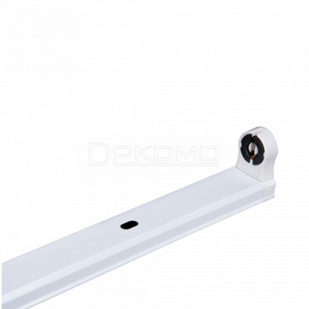 светильник для всех типов LED-ламп Т8 торговых марок Uniel и VolpeПредназначен для установки одной светодиодной лампы T8 с цоколем G13 Накладной способ монтажа на потолок или стену Стандартная длина 1500 мм подходит для большинства помещений Белый матовый корпус обеспечивает равномерное рассеивание света Простая конструкция для легкого монтажа и обслуживания Основные преимущества:Экономичность при использовании светодиодных ламп Универсальность применения в различных типах помещений Долгий срок службы благодаря надежной конструкции Возможность выбора ламп с разной цветовой температурой Простота замены лампы при необходимости Стильный лаконичный дизайн Рекомендуемые сферы применения:Офисные и административные здания Торговые залы и магазины розничной сети Производственные цеха и складские помещения Учебные аудитории и школьные классы Медицинские кабинеты и лаборатории Подсобные помещения и технические зоны Жилые интерьеры и общественные пространства Конструктивные особенности:Оптимальная длина для большинства стандартных помещений Качественный пластиковый корпус с матовой поверхностью Удобная система крепления для быстрого монтажа Стандартный цоколь G13 для широкого выбора ламп Отсутствие необходимости в дополнительном оборудовании Возможность легкой интеграции в существующие системы освещения Данная модель сочетает в себе практичность, надежность и современный дизайн. Светильник идеально подходит для тех, кто ищет простое и эффективное решение для основного освещения помещений различного назначения. Благодаря стандартным размерам и универсальному цоколю, он позволяет легко модернизировать существующую систему освещения, перейдя на энергоэффективные светодиодные технологии.