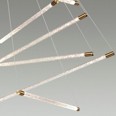 Линейка светильников в золоте выполнена в прозрачном акриле с эффектом очаровательных пузырьков создаст невероятное легкое невесомое пространство за счет тонкости плафонов, будет давать мягкий и комфортный свет. Подвесной светильник со светящимися плафонам словно мечами джедая создадут динамичное и эффектное пространство
