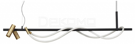 Для пользователей с развитым духом новаторства, при этом ценителей эко материалов отлично подойдет серия Corda ("веревка" с итальянского языка). Подвесной удлиненный светильник длиной 1440мм станет отличным решением для широких загородных пространств. Споты выполнены в цвете античная бронза и снабжены светофильтром honeycomb, вращаются на 180°. Светильник отлично впишется в лофт пространства, в интерьеры в стиле ЭКО, гранж, HIGHTECH, или любое эклектичное пространство.