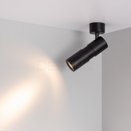 Накладной откидной поворотный светильник, 12Вт. Цвет свечения ТЕПЛЫЙ 3000K, световой поток 720 лм, 60 лм/Вт, регулируемый угол 8-80°, CRI>90. Корпус круглый, металл, цвет черный, IP20. Размеры DxHxL Ø55x132~163,5 мм. Размер чаши Ø60,7x33,5 мм. Входное напряжение AC220-240V, мощность 12Вт. Драйвер встроенный (20-40V, 250 мА).