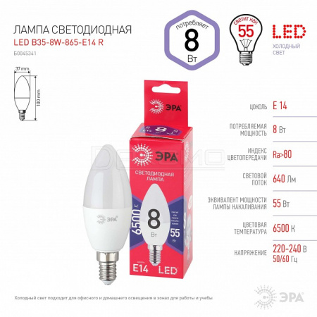 Лампа светодиодная E14 220-240В 8Вт 6500K LED B35-8W-865-E14 R