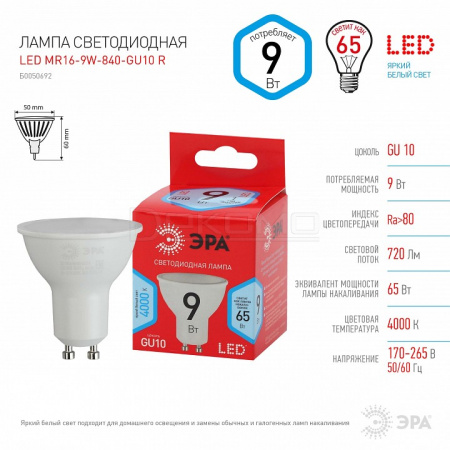 Лампа светодиодная GU10 170-265В 9Вт 4000K LED MR16-9W-840-GU10 R