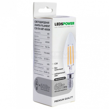 цоколь E14; 176-264 В; 6 Вт