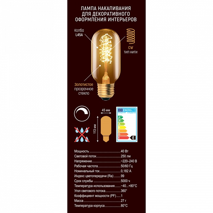 цоколь E27; 230 В; 40 Вт