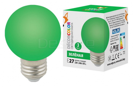 Лампа светодиодная E27 220-240В 3Вт зеленый UL-00006958