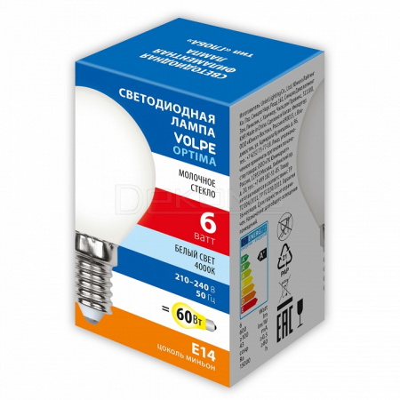 Лампа светодиодная E14 210-240В 6Вт 4000К UL-00008315