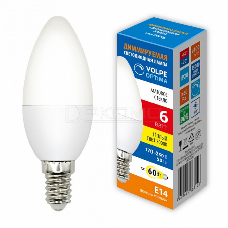 Лампа светодиодная OPTIMA DIM E14 170-250В 6Вт 3000K UL-00009225
