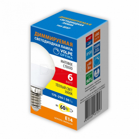 Лампа светодиодная OPTIMA DIM E14 170-250В 6Вт 3000K UL-00009229