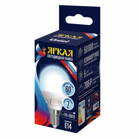 Лампа светодиодная яркая E14 175-250В 7Вт 6500K UL-00011018