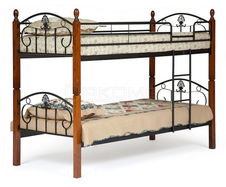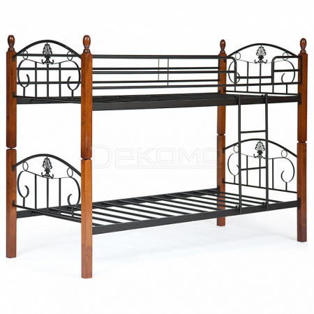 Данное изделие может быть собрано как одна двухъярусная кровать или как две одноярусные. Каркас кровати изготовлен из металла, а ножки изделия из натуральной гевеи (каучукового дерева). Преимуществом такой кровати является прочность, практичность, а также долгий эксплуатационный срок. Кроме того, гевея обладает рядом уникальных свойств: не впитывает влагу и запахи, не требует особого ухода, является материалом повышенной прочности.
