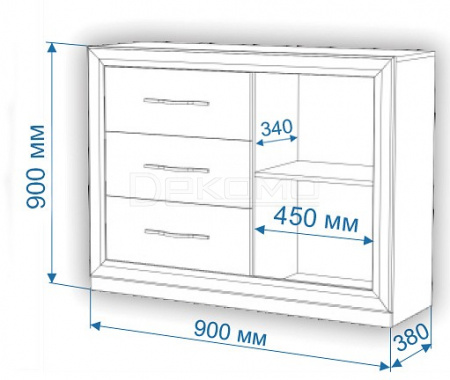 1 дверца, 1 полка, 3 ящика