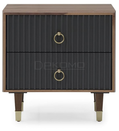 Аккуратная тумбочка с выдвижными ящиками станет дополнением интерьера в стиле модерн и неоклассика. Материалы шпон и МДФ – практичные, долговечные, имеют доступную цену. Можно купить тумбочку под лампу и разные мелочи для спальни, гостиной, прихожей, или любого другого помещения. Она компактная, не займет лишнего места и при этом будет выглядеть очень стильно. Такую модель можно использовать как прикроватную тумбочку с ящиками для хранения мелочей. Рифленые поверхности привлекают внимание, напоминают винтажную мебель под старину. Элементы отделки – ручки-кольца и металлические наконечники на ножках, гармонично дополняют экстерьер тумбочки.