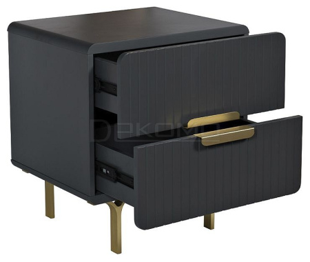 Серая тумбочка - стильное решение для оформления современного интерьера гостиной, спальни или кабинета. Модель будет органично смотреться как в большой гостиной, так и в помещении со скромным метражом. Изделие отличается не только презентабельным внешним видом, но и функциональностью, позволяя с максимальной пользой использовать свободное пространство. Тумбочка имеет два выдвижных ящика для хранения вещей. Фасад тумбочки выточен тонкими линиями и декорирован металлическими ручками латунного цвета, что придает ей некой изысканной футуристичности. В сочетании с ТВ-тумбой из этой же серии можно создать оформление в актуальных тенденциях интерьерного стиля.
