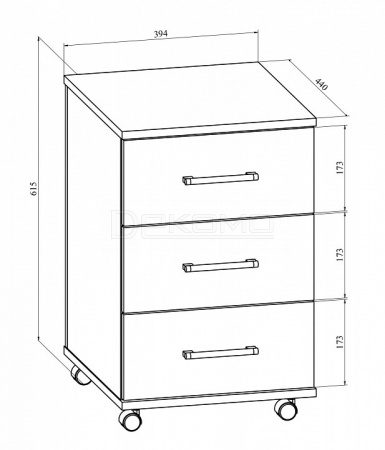- колесики, 3 ящика