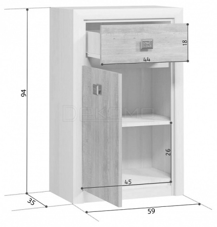 - 1 дверца, 1 полка, 1 ящик
