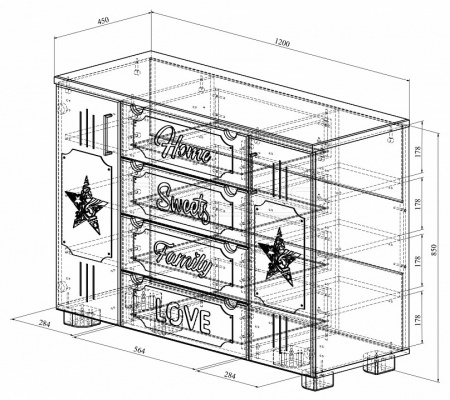 Система мебели Дримстар включает в себя отдельные самостоятельные модули, сочетающие в себе функциональность и уникальность дизайна. С базовым набором модулей легко оформить интерьер любого помещения. Все модули можно комбинировать между собой. Фасады украшены надписями, которые придают моделям оригинальный вид. Коллекция Дримстар поможет вам в оформлении стильного и современного интерьера.