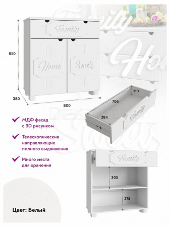 - 1 полка, 1 ящик, 2 дверцы