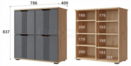 - 4 дверцы, 6 полок