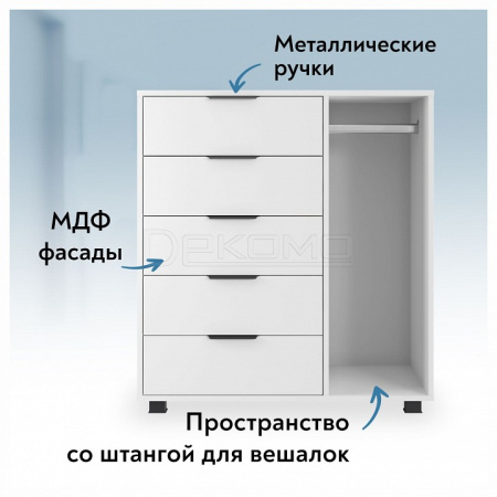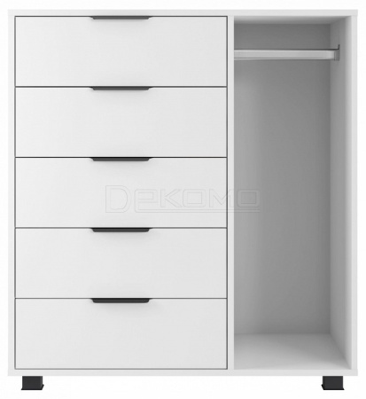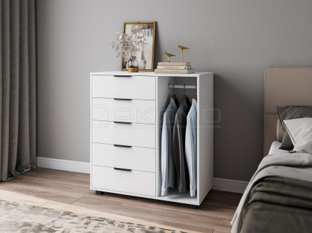 Тумба комбинированная К-20 отлично дополнит место для хранения в спальне и гостиной. Комод оснащен 5-ю выдвижными ящиками и штангой для пиджаков и рубашек.
