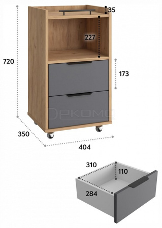 - колесики, 1 полка, 2 ящика