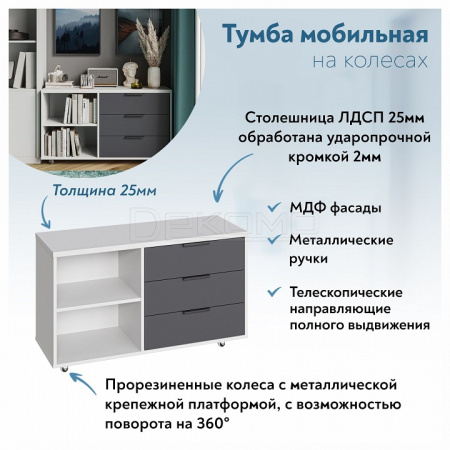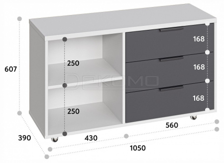 Тумба К-50 подойдет для бизнеса, для компьютерных столов. Тумба оснащена 2-мя полками и 3-мя выдвижными ящиками для различных мелочей. Расположение ящиков только справа.