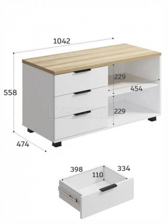 - 1 полка, 3 ящика