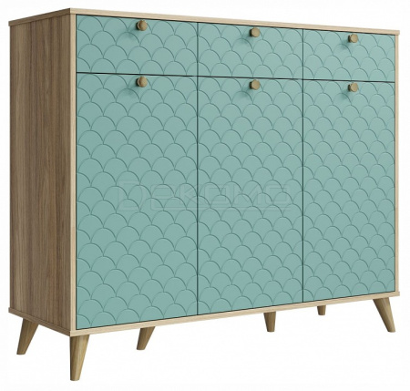 Тумба Велламо ВО-05 станет функциональным и стильным дополнением гостиной комнаты или спальни. Комод визуально поделен на три секции с выдвижными ящиками и распашными дверцами. Стильные и необычные МДФ фасады с фрезеровкой и металлическими ручками. Дно ящика двп 3 мм. Высота опоры из массива дерева 120 мм. Фурнитура: телескопические направляющие полного выдвижения без доводчиков, ручки металл, опоры деревянные.