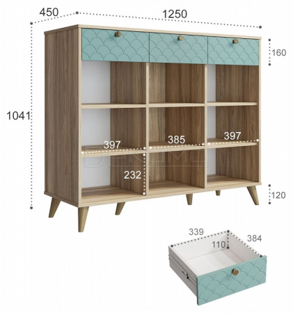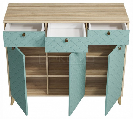 - 3 дверцы, 3 ящика, 6 полок