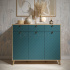 Тумба Велламо ВО-05 станет функциональным и стильным дополнением гостиной комнаты или спальни. Комод визуально поделен на три секции с выдвижными ящиками и распашными дверцами. Стильные и необычные МДФ фасады с фрезеровкой и металлическими ручками. Дно ящика двп 3 мм. Высота опоры из массива дерева 120 мм. Фурнитура: телескопические направляющие полного выдвижения без доводчиков, ручки металл, опоры деревянные.