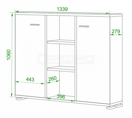 - 2 дверцы, 6 полок