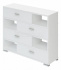 Красивая тумба с симметричным расположением закрытых ящиков на полках.