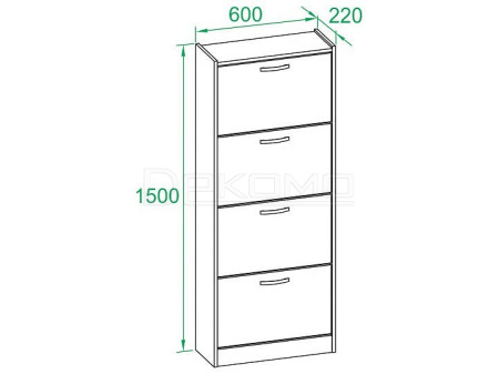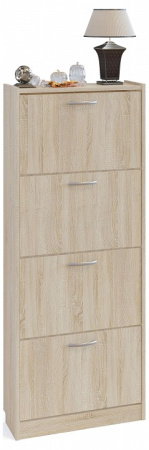 Высокая и компактная тумба для обуви в классическом исполнении. Модель имеет четыре отделения по две полки в каждом и вмещает в себя примерно двенадцать пар невысокой обуви на плоской подошве. Удобно и практично. Благодаря маленькой глубине — всего 220 мм, обувница не будет занимать много места.