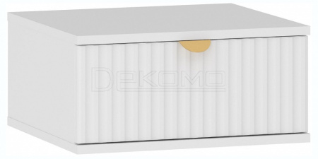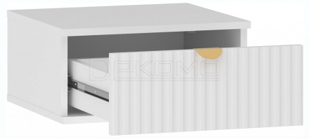 Тумба Дакота НМ 040.20 станет дополнением в спальне. Тумба подвесная и может служить туалетным столиком или прикроватной тумбой. Трендовая рельефная фрезеровка на фасадах волна. Металлическая ручка, цвет-золото. Каркас: ЛДСП 16 мм. Фасад: МДФ 16 мм. Один выдвижной ящик.