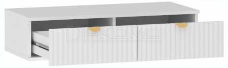 Тумба Дакота НМ 040.21 станет дополнением в спальне. Тумба подвесная и может служить туалетным столиком или прикроватной тумбой. Трендовая рельефная фрезеровка на фасадах волна. Металлические ручки, цвет-золото. Каркас: ЛДСП 16 мм. Фасад: МДФ 16 мм. Два выдвижных ящика.