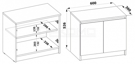 - Ш:600 x Г:360 x В:526