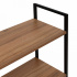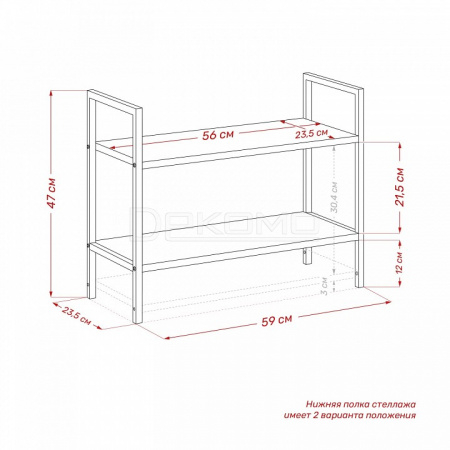 Нижняя полка крепится на разных высотах, что позволяет адаптировать стеллаж под книги, технику или корзины.